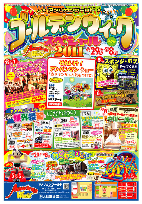 日時:2011年4月29日(金・祝) 15:00~、4月30日(土) 15:00~、5月1日(日) 11:55~