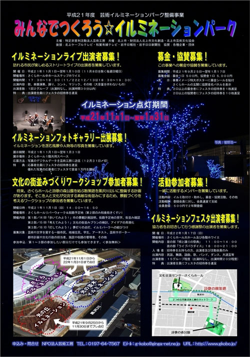 平成21年度芸術イルミネーションパーク整備事業として、2009年11月1日~2010年1月31日の期間、さくらホール周辺がイルミネーションで彩られます。