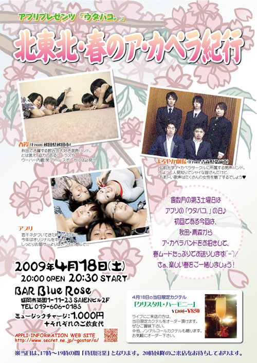 初回である今回は、秋田・青森からアカペラバンドをお招きして、春ムードたっぷりでお送りします。