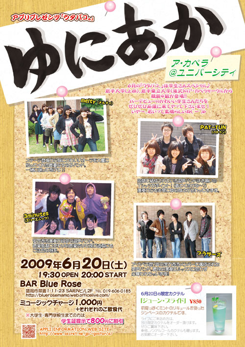 岩手大学(上田)、岩手県立大学(滝沢)のア・カペラサークルから精鋭4組が登場!!
