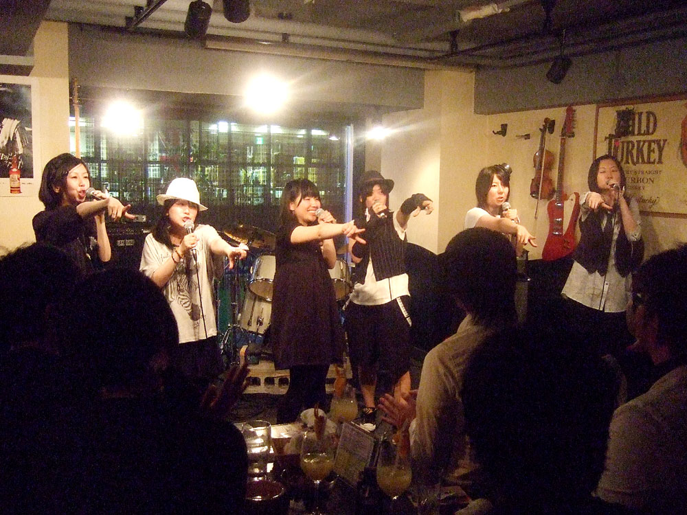 歌姫7人、ピアノ、カホン、ギターの総勢10名による、お馴染みのJ-POPをお楽しみください。さらに今回、ブルーローズ回転特別記念として、歌姫たちのHOMEバンドの競演が実現しました。